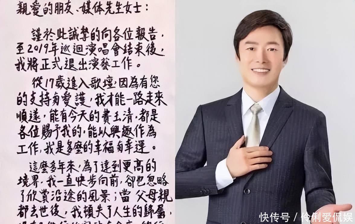 费玉清和安井千惠分手后,他再也没有谈过恋爱,更没有传出任何的绯闻。2019年他更是手写了一封退休书,开了一场告别演唱会,便“ 消失”在了娱乐圈。